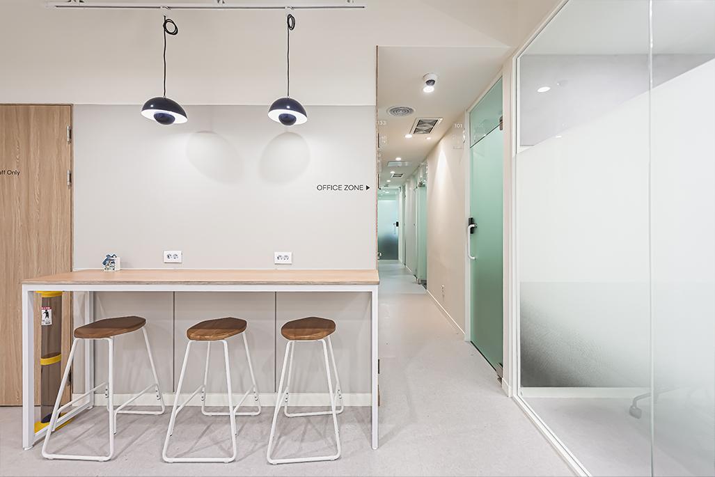 동선이 넓어 작은 규모의 오피스임에도 여유 있는 분위기를 유지합니다.